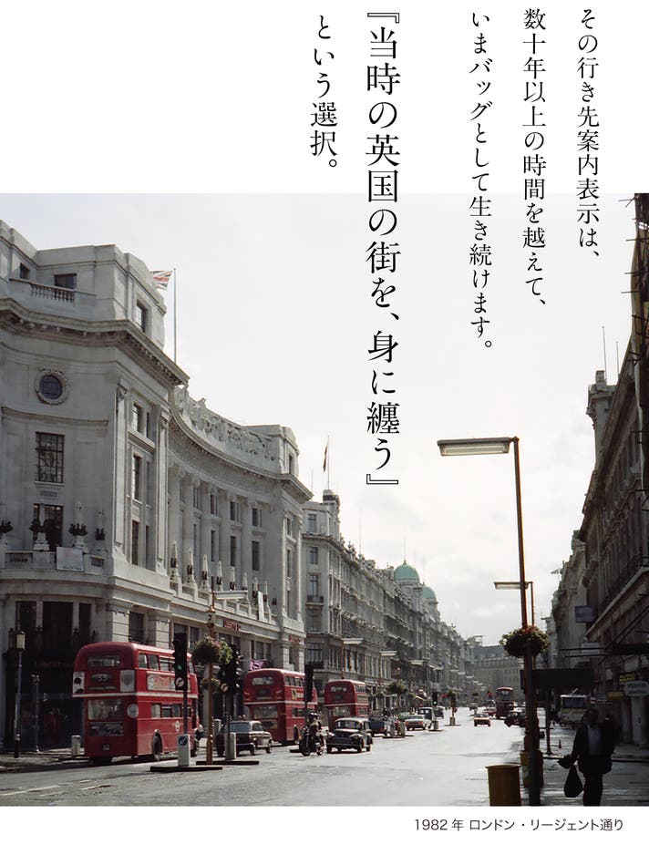 80〜90年代の英国の街角を見てきたバスロールサイン。その息吹をそのまま纏い、倉敷のキャンバス、姫路レザー、日本の職人の手技を重ねることで、他にない2wayバッグとして再生させるプロジェクトです。