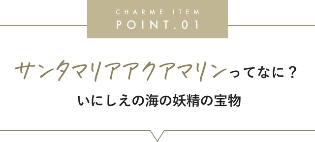 アクアマリンの中でも最高峰に位置する宝石「サンタマリアアクアマリン」。 なんと2000年以上前から存在していたと言われています。そして、"海の精の宝物が浜辺に打ち上げられて宝石になった"と言い伝えがあるほど、この宝石は人々を魅了し続けてきたんです!
