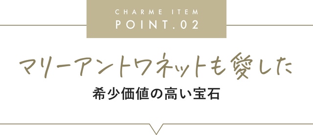 中世のヨーロッパでは、社交界など暗い照明の下でより深い色合いや輝きを放つことから、『夜の宝石の女王』と言われていたほど美しい輝き。かのマリーアントワネットもその美しさに魅了され、珍重していたと言われています。