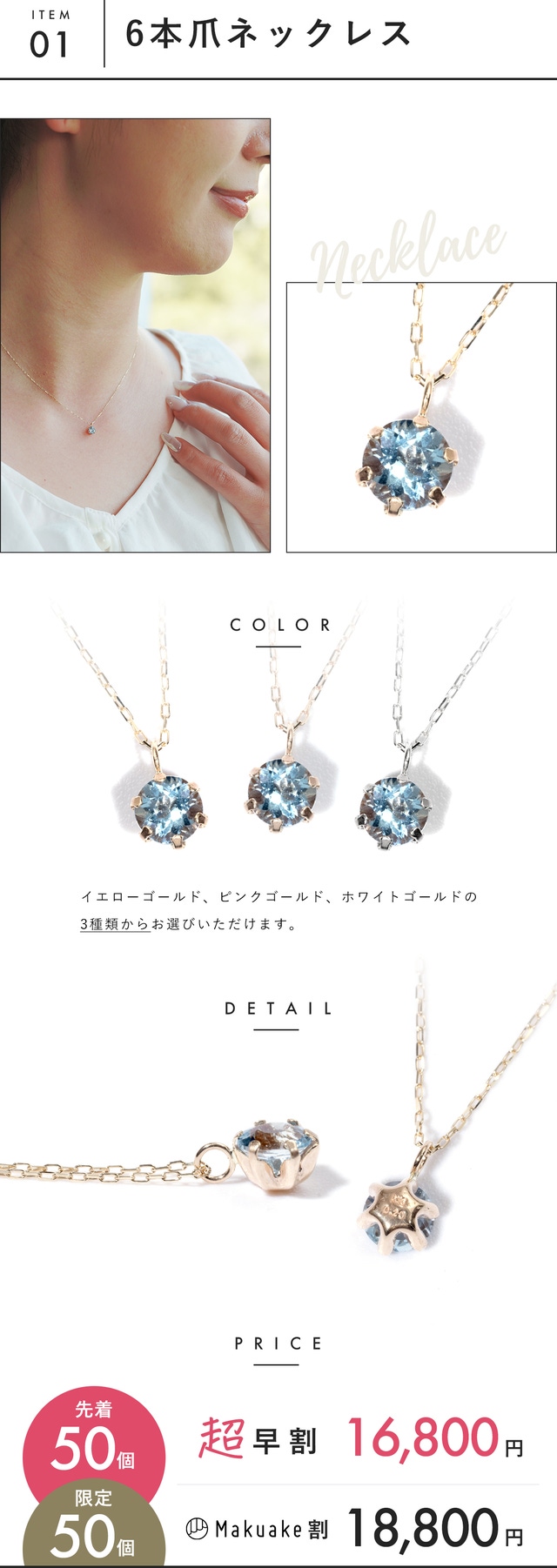 【Makuake割】サンタマリアアクアマリン 6本爪ネックレス n1