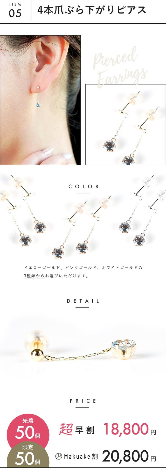 【Makuake割】サンタマリアアクアマリン 4本爪ぶら下がりピアス p2