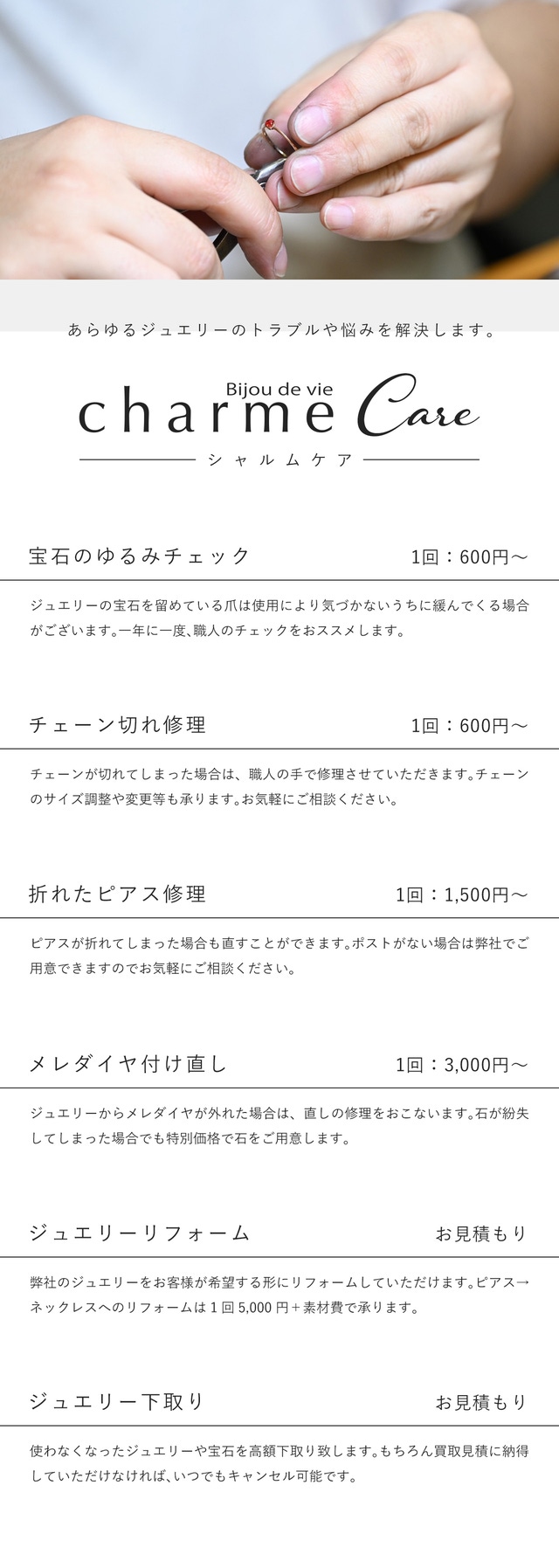 人生で長く身に着ける大切なジュエリーだからこそ 、『購入後』にそのジュエリーやブランドとどう付き合っていくかがとても重要です。