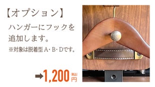▲本体の樹種はウォールナット。ハンガー固定タイプにフック標準装備。ハンガーのサイズ選べます。