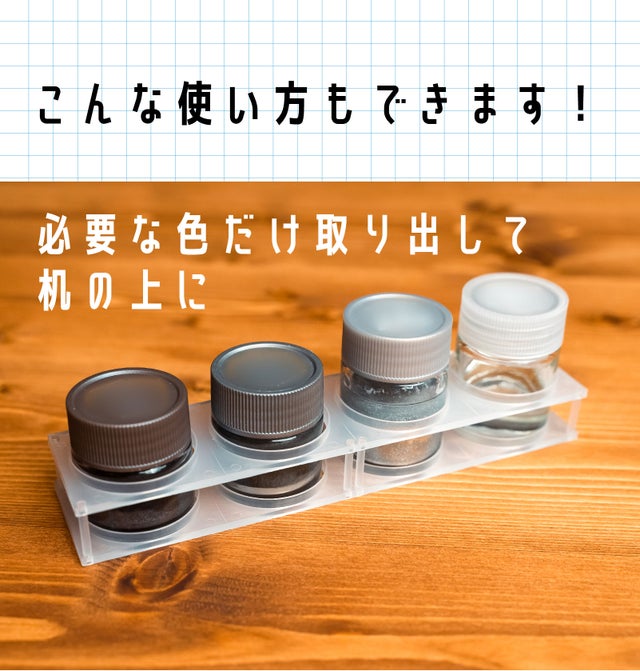 オーガナイザーパーツをお手持ちの塗料瓶収納ケースに置くだけ。