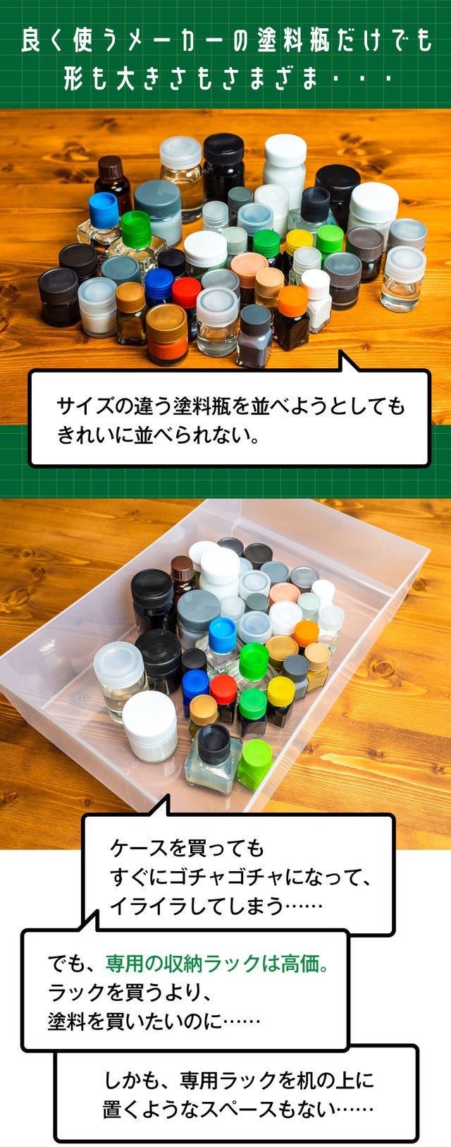 プラモデルを趣味とする方の共通の悩み。それは、増え続ける塗料瓶の収納ではないでしょうか。