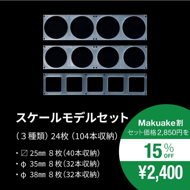 スケールモデルでよく使われる角25mm(T社)・丸35mm(T社・C社・G社)・丸38mm(F社)をお買い得なセットにしました。