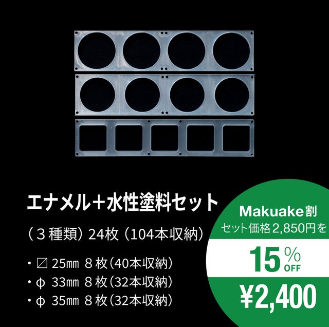 エナメル+水性塗料向け 塗料瓶オーガナイザーのセットになります。