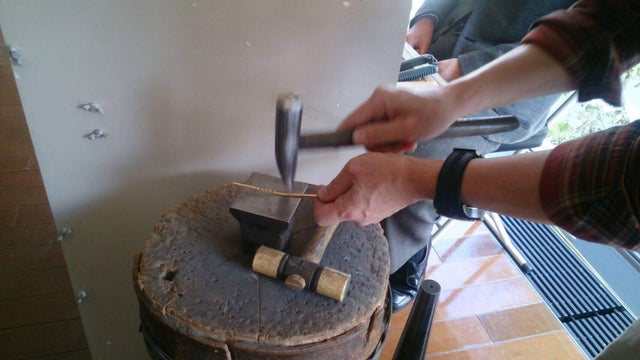 真鍮の板を切り抜いてから、丸みをつける加工をしています。