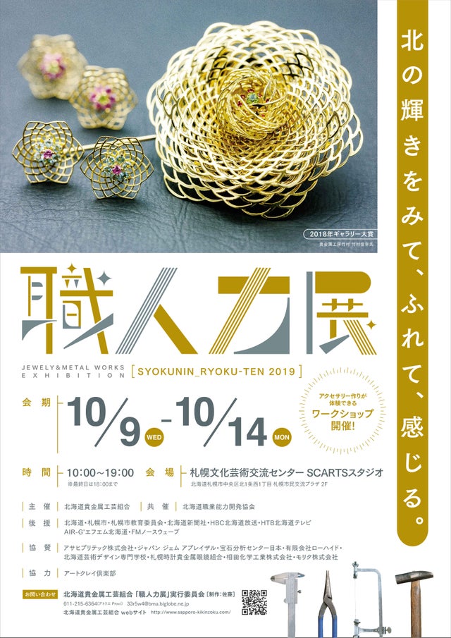 「職人、作家の技術、デザイン、アイデアを身近に感じてもらいたい」「未来の職人を育てたい」を基本理念とした北海道貴金属工芸組合員(錺職人・工芸作家・金工講師・ものづくりを学ぶ学生等)による貴金属等を使用した作品の展示販売会です。