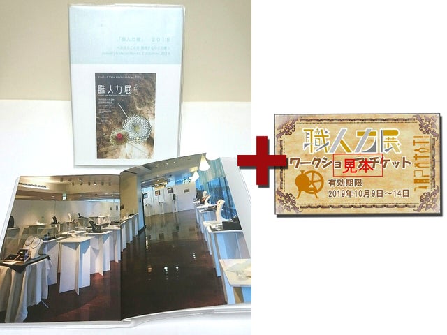 職人力展2019で期間中開催するワークショップをどれでも1回受講可能なチケット2枚と第7回職人力展のフォトブック、ボールチェーンリングのセットです。