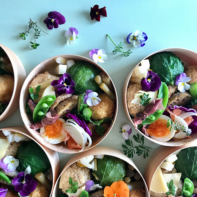 彩り豊かなOBENTO。蓋をあけるとお花畑のよう。