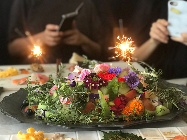 エディブルフラワー(食用花)をたくさんあしらった「花のケーキ」