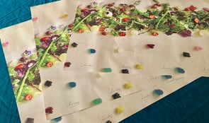 実際のサラダロードを写真に撮り、大判に印刷した上に食品対応の耐油性耐水性加工を行っています。