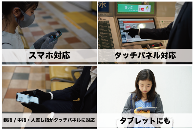 もちろん、スマホ画面や駅の券売機も、そのまま使用する事が可能です。いちいち脱ぐ必要がないので、煩わしさはありません。