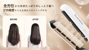 これにより、髪全体を均一にケアし、アイロン後もパサつかず、しっとりなめらかな手触りを長時間キープします。