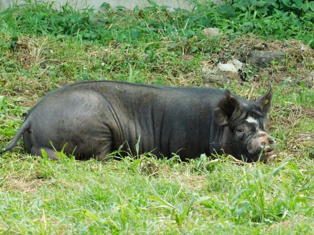 大規模生産には向きませんが小川に挟まれた農場は湿度が保たれ、呼吸器系の疾患に弱い鼻の短い黒豚にとって理想的な環境です。