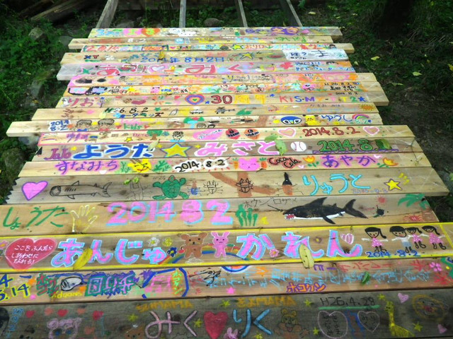 (6) 基礎部分の支援者の証として貼り付けている木道脇のアルミプレート(14cm×5cm)への名前などの書き込み(画像データをそのまま書き込みます)木道脇のアルミプレート(14cm×5cm)に描きつけるデータをカラーのPDFファイルで info@kintaroclub.net に送付ください。 送付先される際に、お名前、 ご支援コース、 連絡先(メールアドレス、電話番号)をお知らせ下さい。
