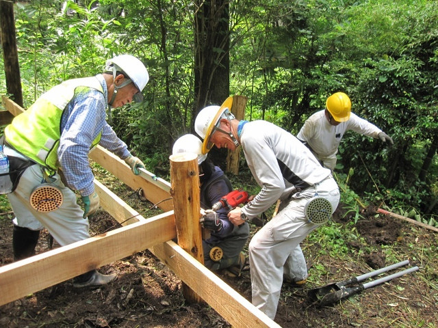 材料となる柱には県産材を、板には県産材の間伐材を使用し、間接的に里山の整備に貢献しています。また、防腐剤は使用せず、木材が傷んだら取り替えることとしています。