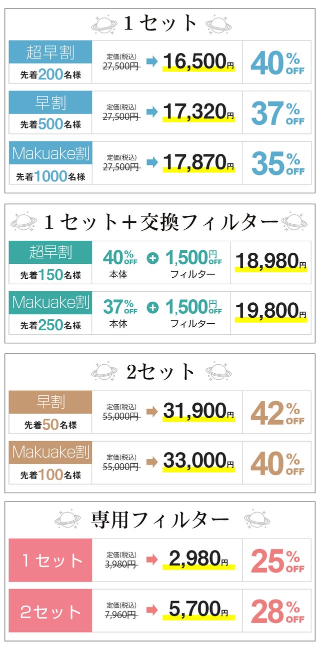 【早割】先着100名様 40%オフ!Saturn空気清浄機 2セット