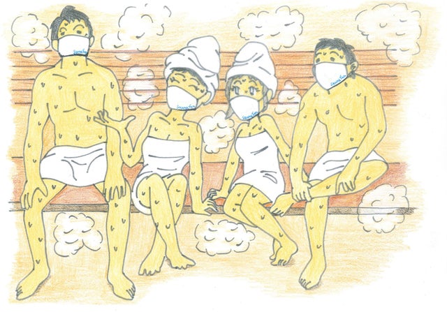 "ととのう"ためには、サウナを利用する一人一人が気持ちよく過ごせる心配りが大切です。こんなご時世だからこそ、友人同士でサウナを利用する人は、飛沫防止のためにマスクをつけて周囲に配慮を。一人で利用する方はマスクをすることで、よりサウナに集中することができます。