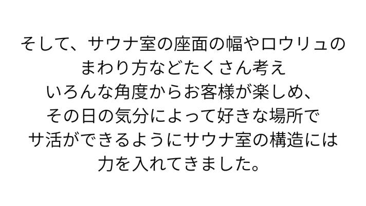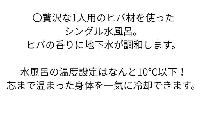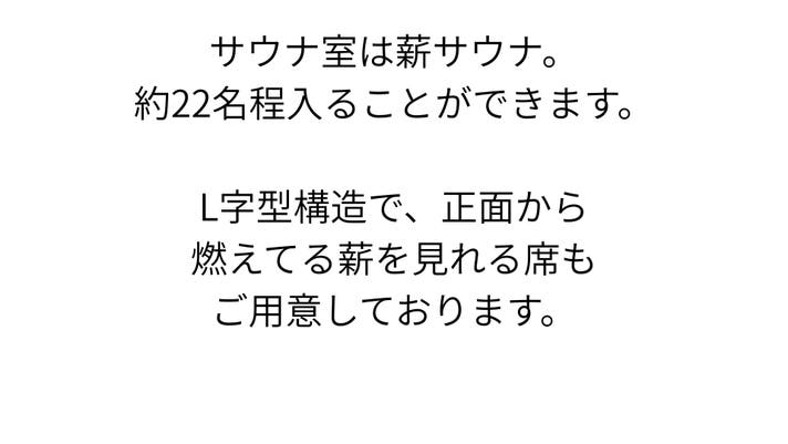 - 【極上のスペック】約22名収容の薪サウナ室、2種類の地下水水風呂、拘り抜いた内外気浴スペース