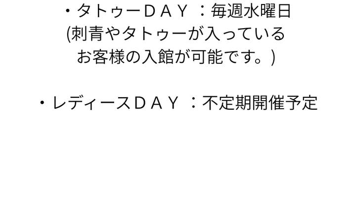 ※タトゥー、刺青が入っているお客様はタトゥーDAYの日(毎週水曜日)にご利用いただけます。