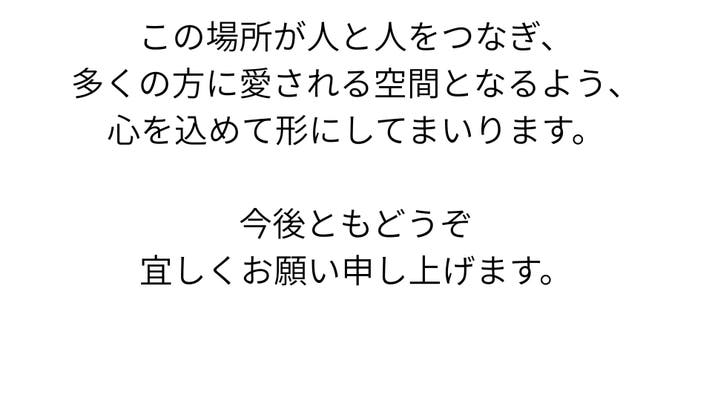 ※詳細の日程はプロジェクト終了後マクアケメッセージにて調整させて頂きます。工事進捗や営業許可の取得タイミングにより日程が変更になる可能性があります。