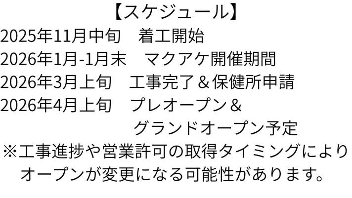 ・グランドオープン日は、2026月4月上旬~4月中旬を予定しております。