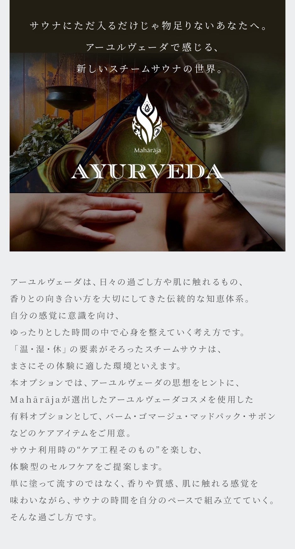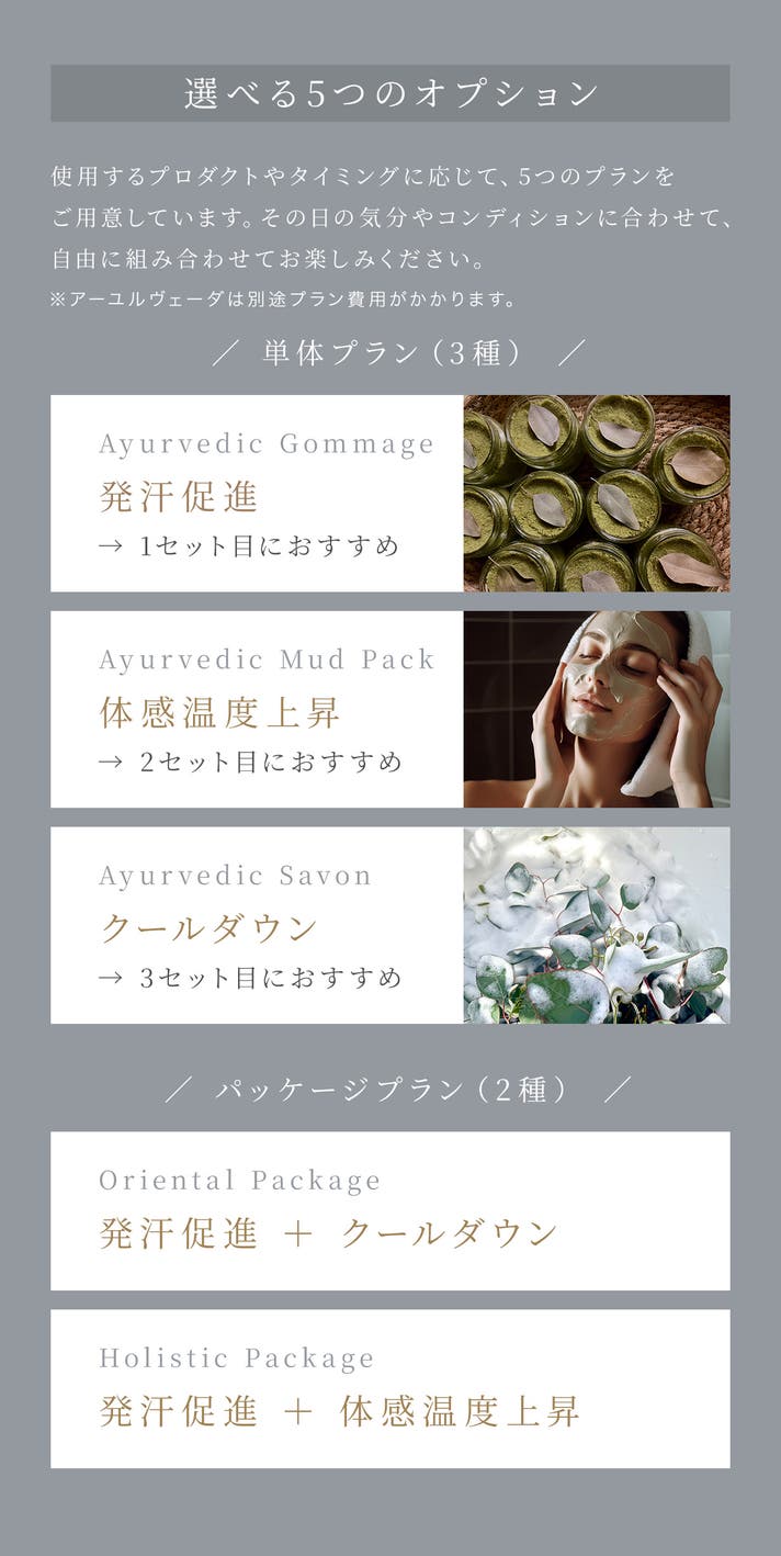 インド政府認定アーユルヴェーダセラピストが率いる薬草サウナの専門集団。