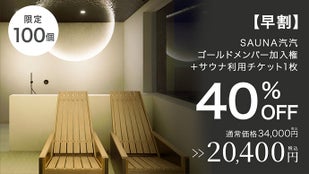 ・SAUNA汽汽ゴールドメンバー加入権+サウナ利用チケット1枚(定価約34,000円の40%off)