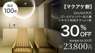 ・SAUNA汽汽ゴールドメンバー加入権+サウナ利用チケット1枚(定価約34,000円の30%off)