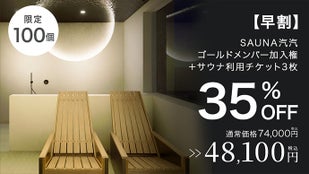 ・SAUNA汽汽ゴールドメンバー加入権+サウナ利用チケット3枚(定価約74,000円の35%off)