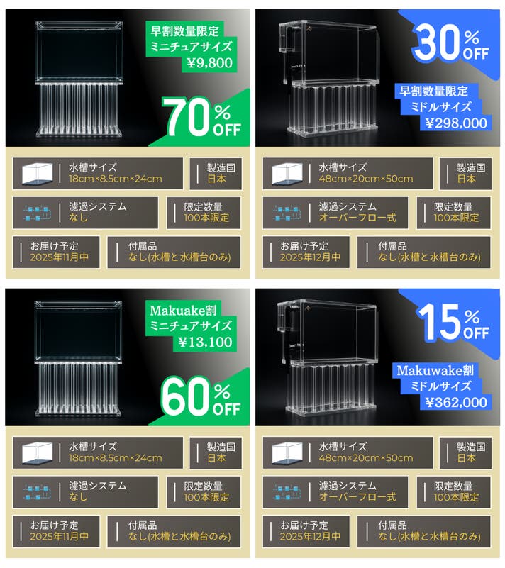 【Makuake割】ミドルサイズのSavilerow水槽 1台