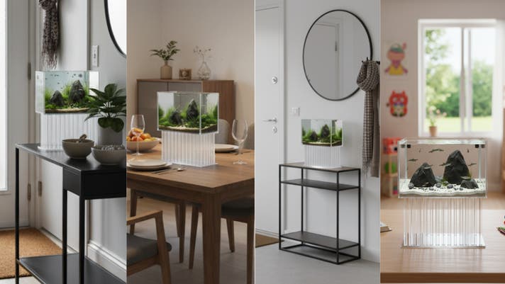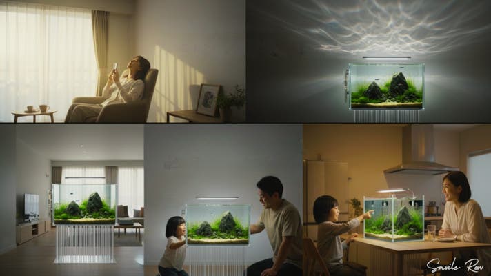 「今日はどこに隠れてる?」「エサ、あげようか?」 小さな生命を囲むうち、家族の間に自然と会話が生まれる。来客との気まずい沈黙も、この水槽がアイスブレイクしてくれる。デジタルな関係性が増える時代に、アナログな温もりを育みます。