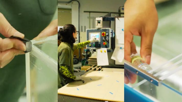 savilerowの大型水槽では、通常のアクリル水槽では用いないほどの厚板を採用し、面の耐性と歪みを徹底管理。