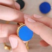 カバーの色も、小さな円もブルー。こちらはブルーカバーのみになります。カバーを取り外して、リングなどの他の商品に付け替えることは可能です。