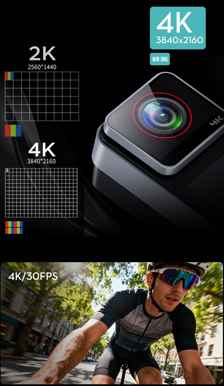 動画解像度:4K: 3840×2160/30fps, 2K: 2560×1440