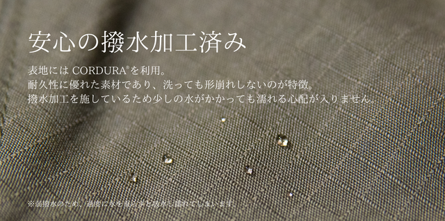 表地には撥水加工を施しているため少しの水がかかっても濡れることはございません。