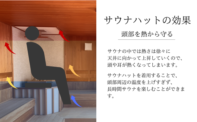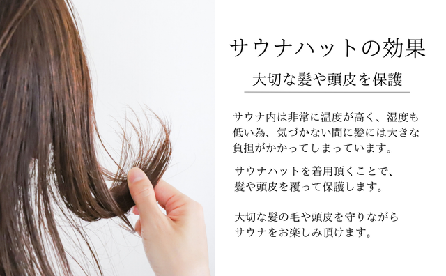 そもそもサウナハットですが、『髪や頭皮を覆って保護』『頭部周辺の温度を上げすぎなくする』の二つの目的があります。
