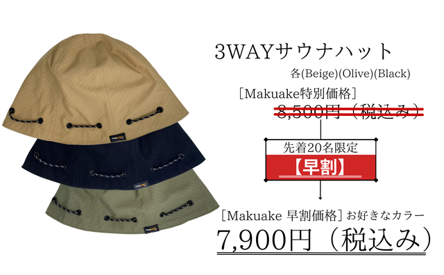 【Makuake特別価格】3WAYサウナハット 1点 3色展開