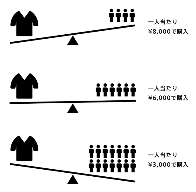 スケールズで取り扱う商品の価格は、お客さま一人一人から注文が増えるごとに、リーズナブルな価格になっていきます。