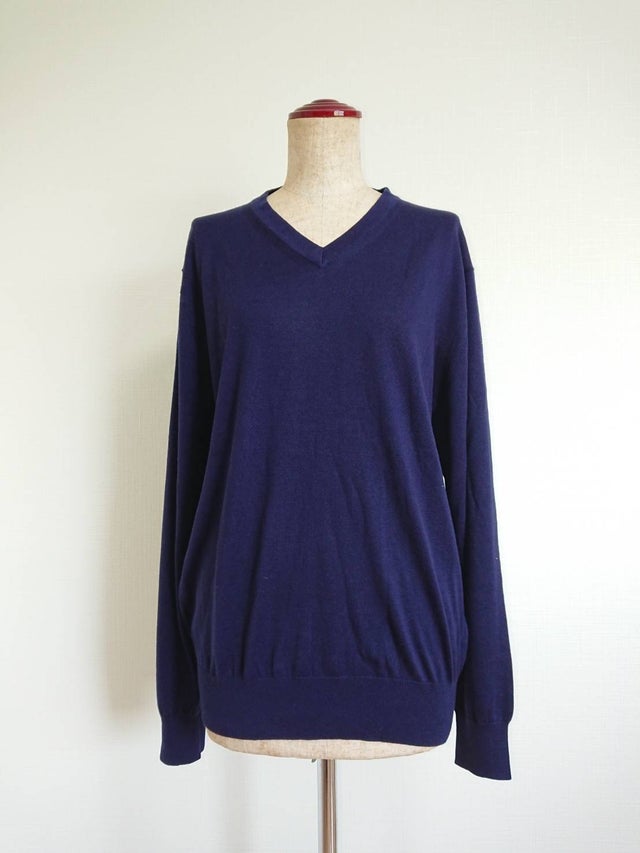 初回は、飽きのこないベーシックなVネック(ネイビー)をご用意。