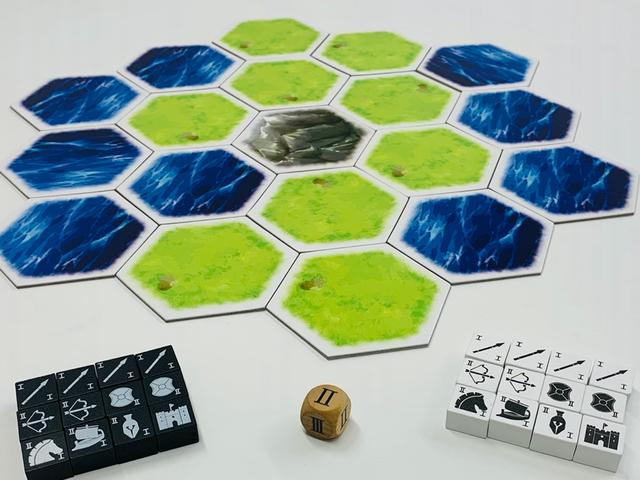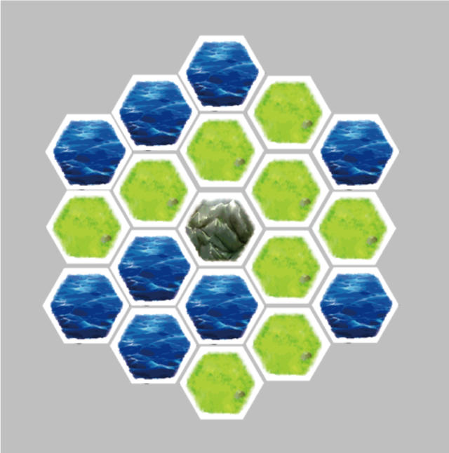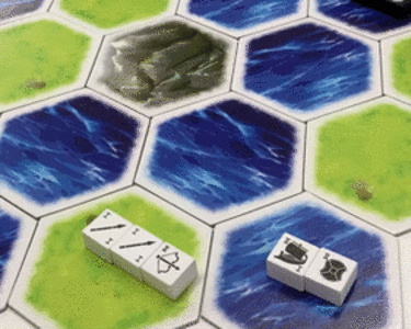 六角形のマス目に草原・水辺・山岳と言った地形という概念が追加され、より戦場感のあるフィールドが誕生し、地形を把握するという新しい思考力を要求します。また、ゲームによってタイルの並びが違うので新鮮な気持ちで新しいフィールドを楽しめるのもポイントとなっています。