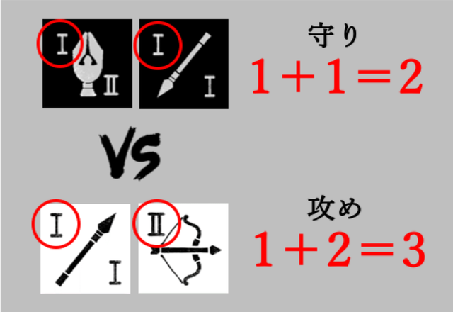 相手の駒を取るには、駒ごとに決められた攻撃力が守備力を超える必要があります。
