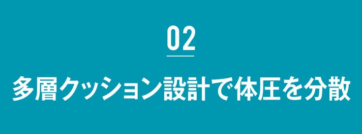 腰やお尻に当たる部分は硬めの層にし沈み込みすぎないよう設計。