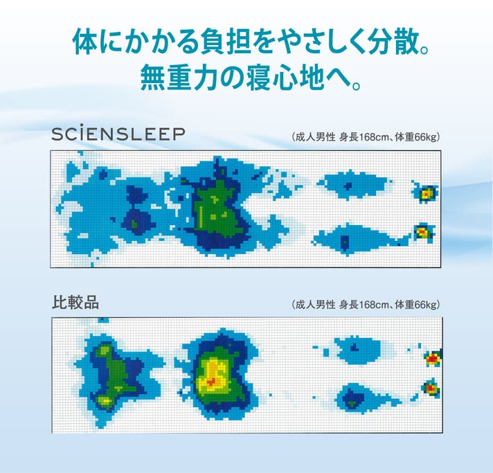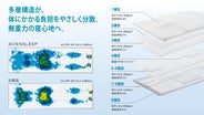 その他の部分はほどよくやわらかな構造にし、無重力の寝心地を実現しました。