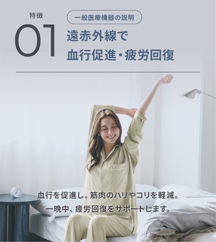 - 着るだけで疲労回復。医療機器認証の前開きパジャマで上質な睡眠時間を