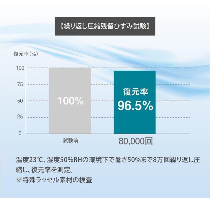 圧縮テストでも、8万回の圧縮試験で高い復元率を記録。