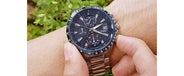 ガンメタルのようなチタン製腕時計の外観は、先進的なイメージを想起させます。また、美しく艶出しされたベゼルはチタンのグレー色と融合し、洗練された趣を感じさせます。チタン製のバンドはチタン独特の深みのある色合いで、角度や照明によって色が異なって見えるため、様々な魅力をお楽しみいただけます。