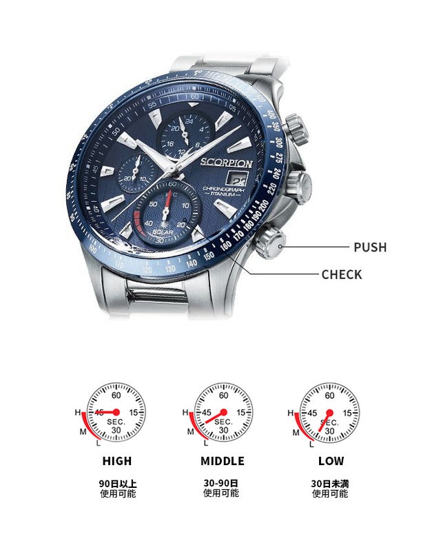 オールチタン素材、日本製ソーラームーブメントの腕時計は一般的に高価になりがちです。しかしながら、当プロジェクトのスコーピオン オールチタンソーラーウォッチは、輸入元が卸店や販売店等の流通経路を通すことなく直接お届けするため、リーズナブルな価格で提供させていただく事が実現いたしました。腕時計としての役割をしっかりと担いながらも、スタイリッシュで飽きのこないデザイン、プロダクトに込められた様々な拘りをご覧ください。